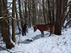 Kirsten kam Samstagnachmittag und wir sind 40 Minuten mit den Pferden spazieren gegangen. Am Bächlein haben wir wieder rumgestanden.