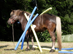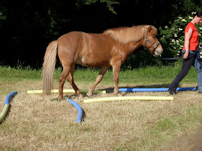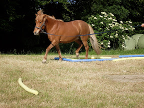 Am Nachmittag kam Kirsten und wir haben mal wieder mit den Pferden und den bunten Stangen gespielt.