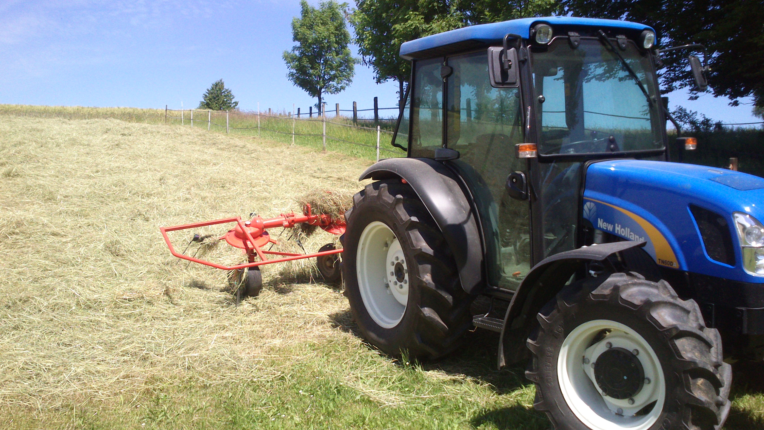 Das Wetter der letzten Tage ist super für „Heubauern“. Hier in der Ecke ist alles auf den Wiesen was nur geht. Donnerstag haben wir gemäht und ich habe Freitag und Samstag immer schön gewendet. Da unser kleiner Dexter mich verfolgt, ist es nicht so prickelnd ihn frei auf dem Hof laufen zu lassen. So richtig gut gehorchen ist ja auch noch nicht… Logisch, in dem Alter. Aber Treckerfahren, das hat er schon gelernt. Meist legt er sich hinter meinen Fahrersitz auf die Arbeitshandschuhe und kleine Werkzeugkiste. Da kann Dexter schlafen oder aus dem Fenster gucken. Das mag er.