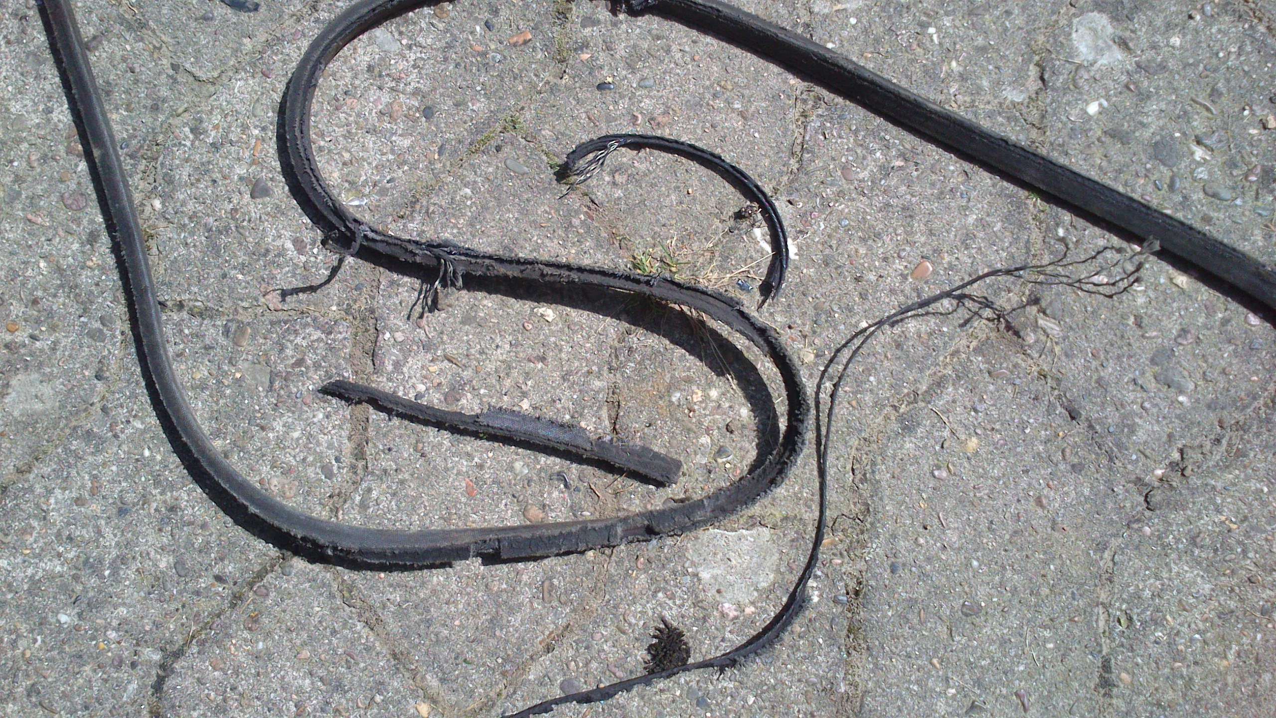 Eigentlich wollte ich letztes Wochenende Rasen mähen. Doch beim Reinigen und Nachsehen des Aufsitzmähers vor dem loslegen, habe ich festgestellt, dass einer der Antriebsriemen an schlimmer Materialermüdung leidet. Damit konnte ich keinesfalls noch etwas mähen. Da wäre mir das alles um die Ohren geflogen. Also habe ich den Riemen ausgebaut und im „Hobbykeller“ nachgesehen, ob wir noch etwas auf Lager haben. Leider fand ich nur einen Zettel mit Einbauanleitung des Riemens und diversen Nummern. Den Zettel habe ich erstmal in meine Arbeitstasche gesteckt, mal sehen ob die Herren beim Gartenprofi das Ersatzteil besorgen können. Zur Vorsicht kam auch der ausgebaute Riemen mit ins Auto. Naja, da ich nicht mit dem Rasenmäher loslegen konnte am Samstag, habe ich mit der Motorsense im Garten den Rest des neueingesäten Gras abgemäht.