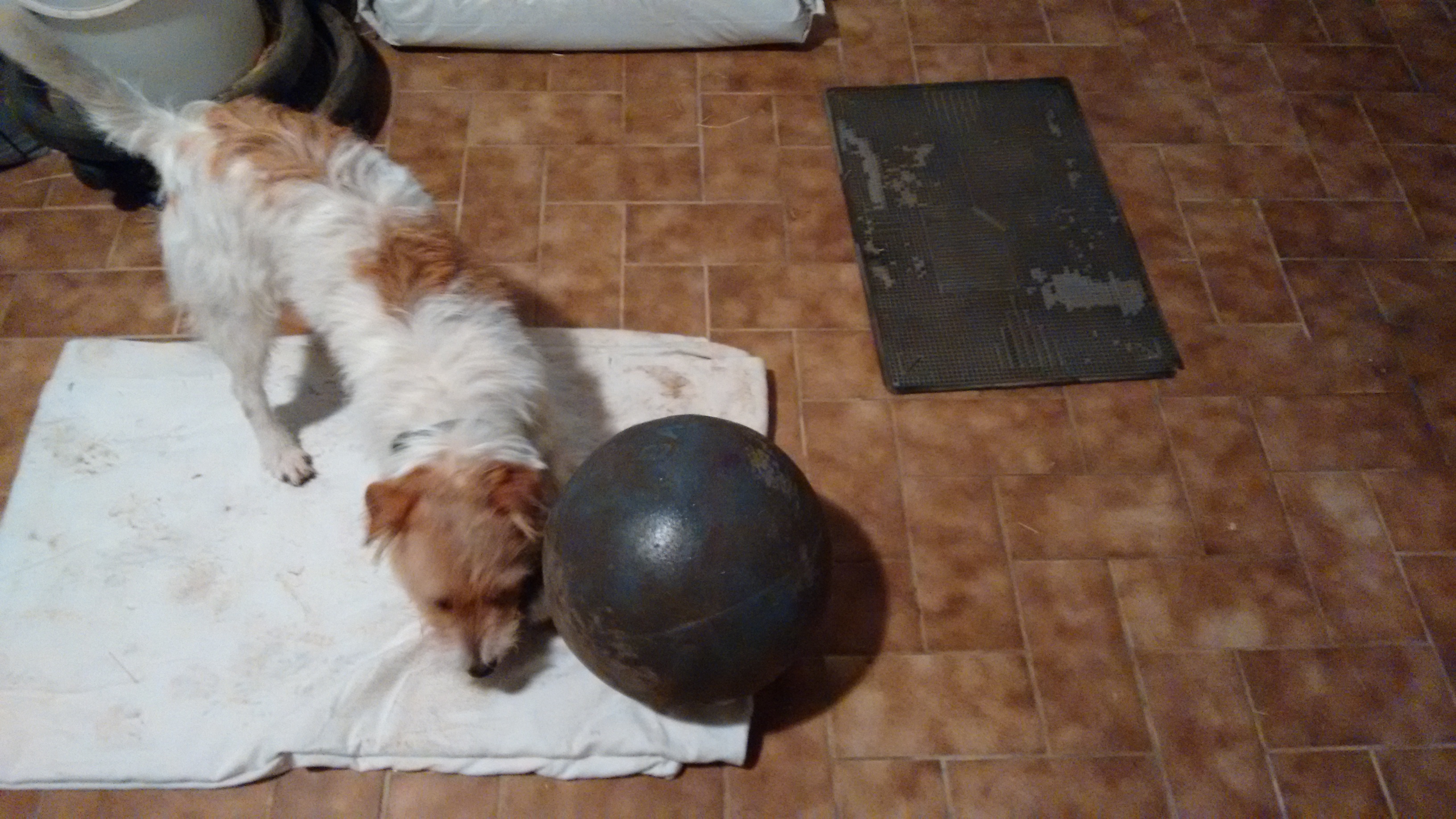 Dexter hat dann noch beim Heuabwerfen und fegen geholfen. Und auch beim abendlichen Füttern hat er „Möhren getragen“ – allerdings nicht zu den Pferden hin, sondern eher weg von den Pferden. Dann kam er mit seinem Gummiball angelaufen.