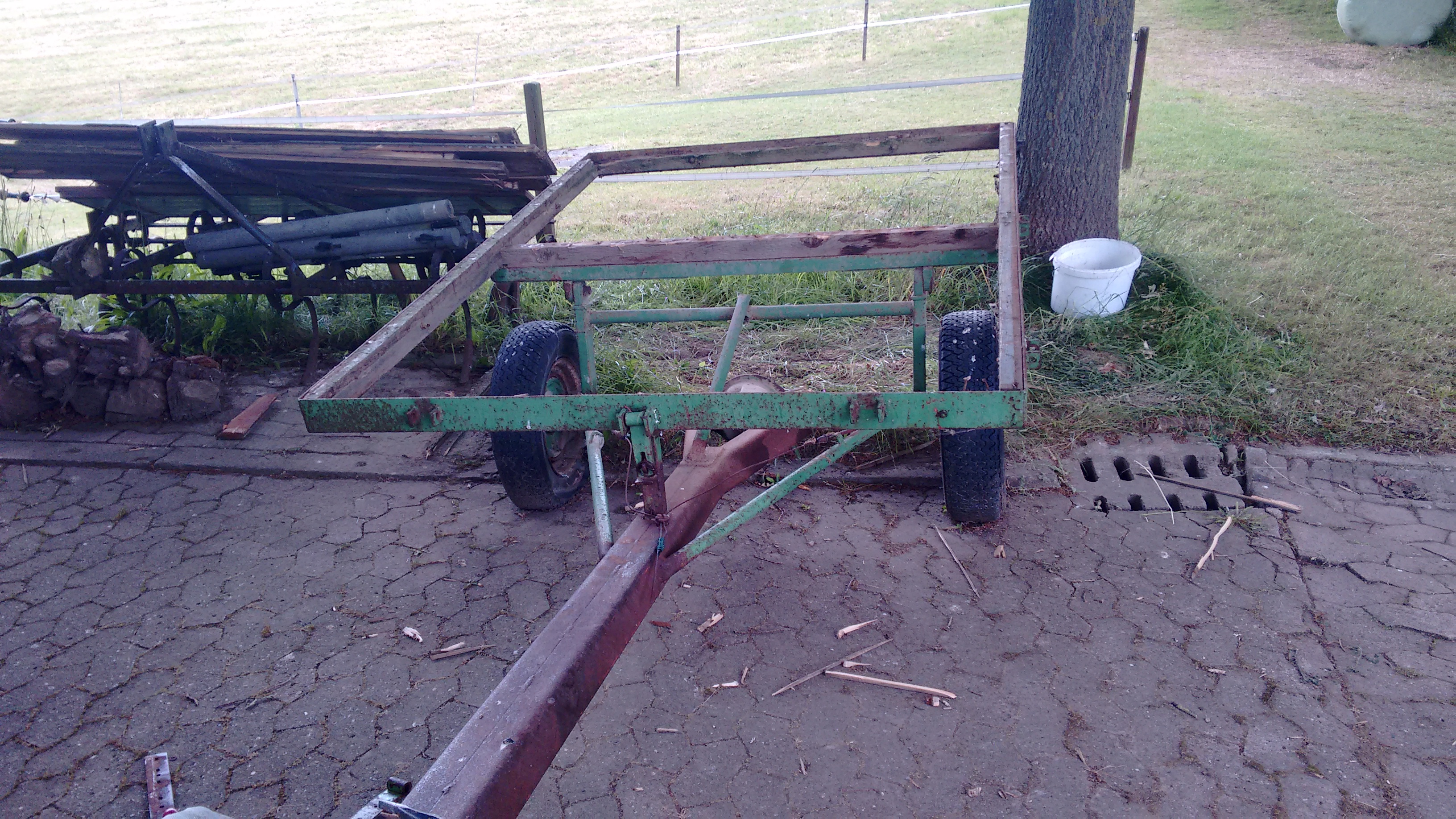 Letztes Jahr im Sommer habe ich angefangen den uralten Kipphänger zu zerlegen. Die Holzbretter und den Holzboden habe ich vom Eisengestell entfernt. Seitdem stand das Metallgerippe an der Seite herum.