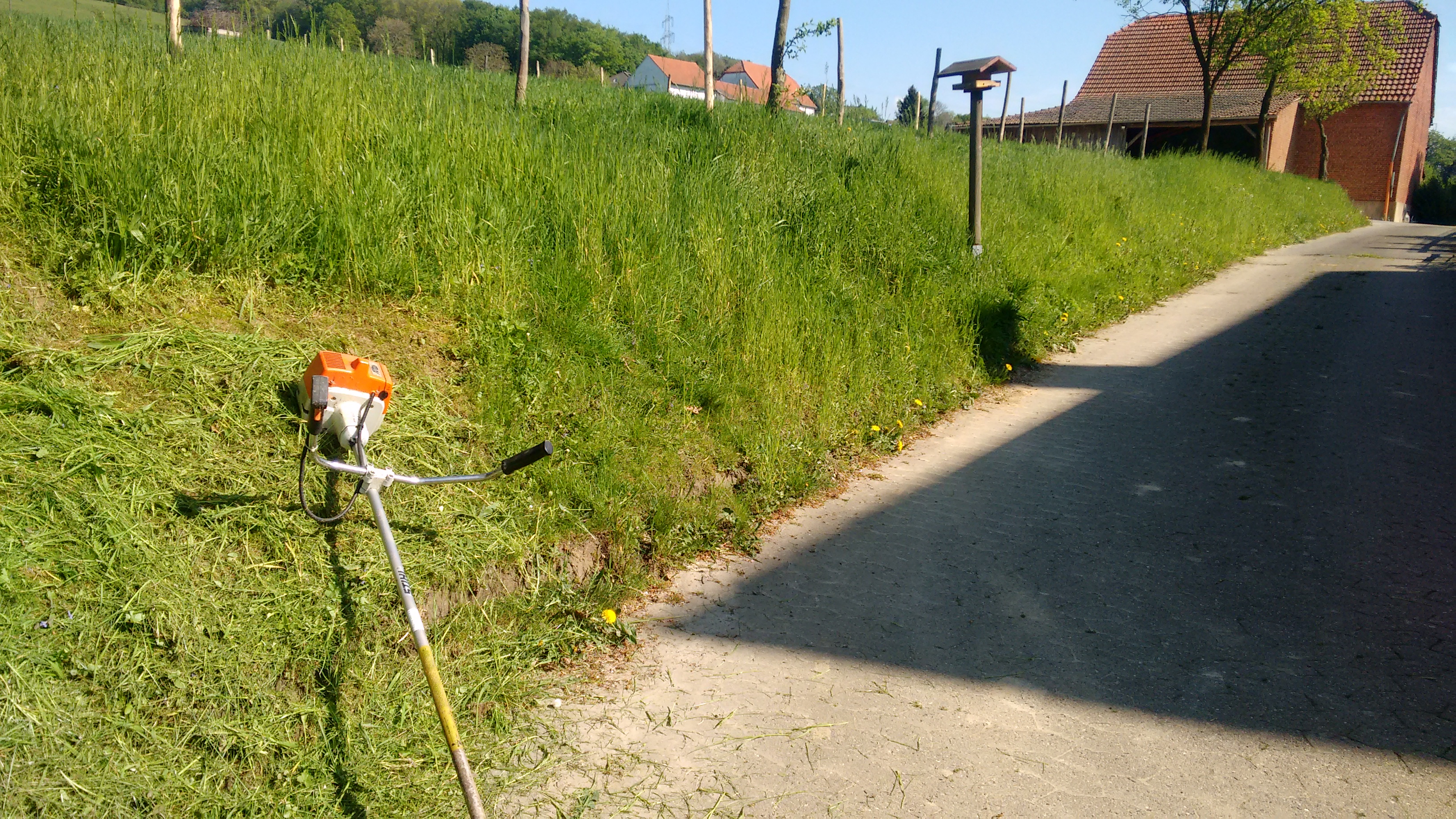 Am Nachmittag habe ich Benzin für Rasenmäher und Motorsense geholt und meine Stihl-Sense aus dem Winterschlaf befreit.