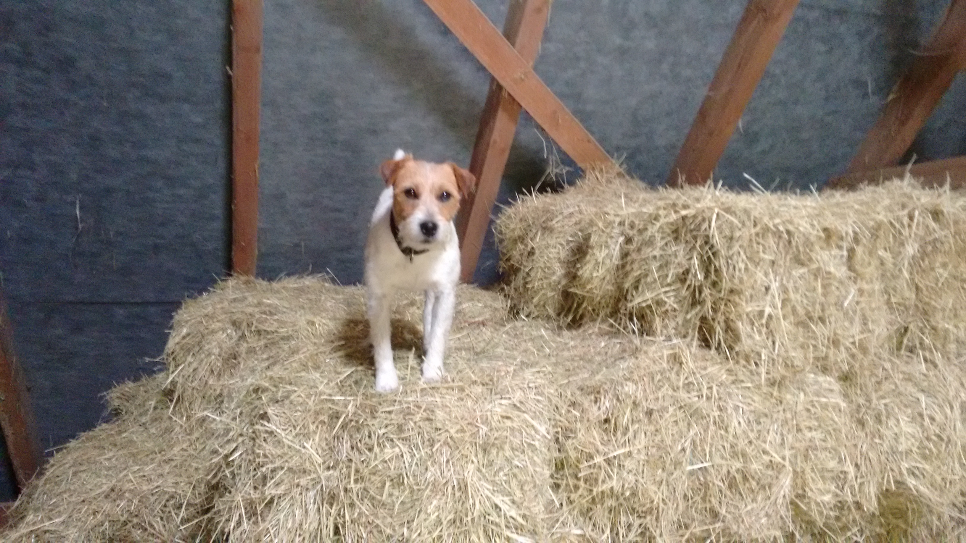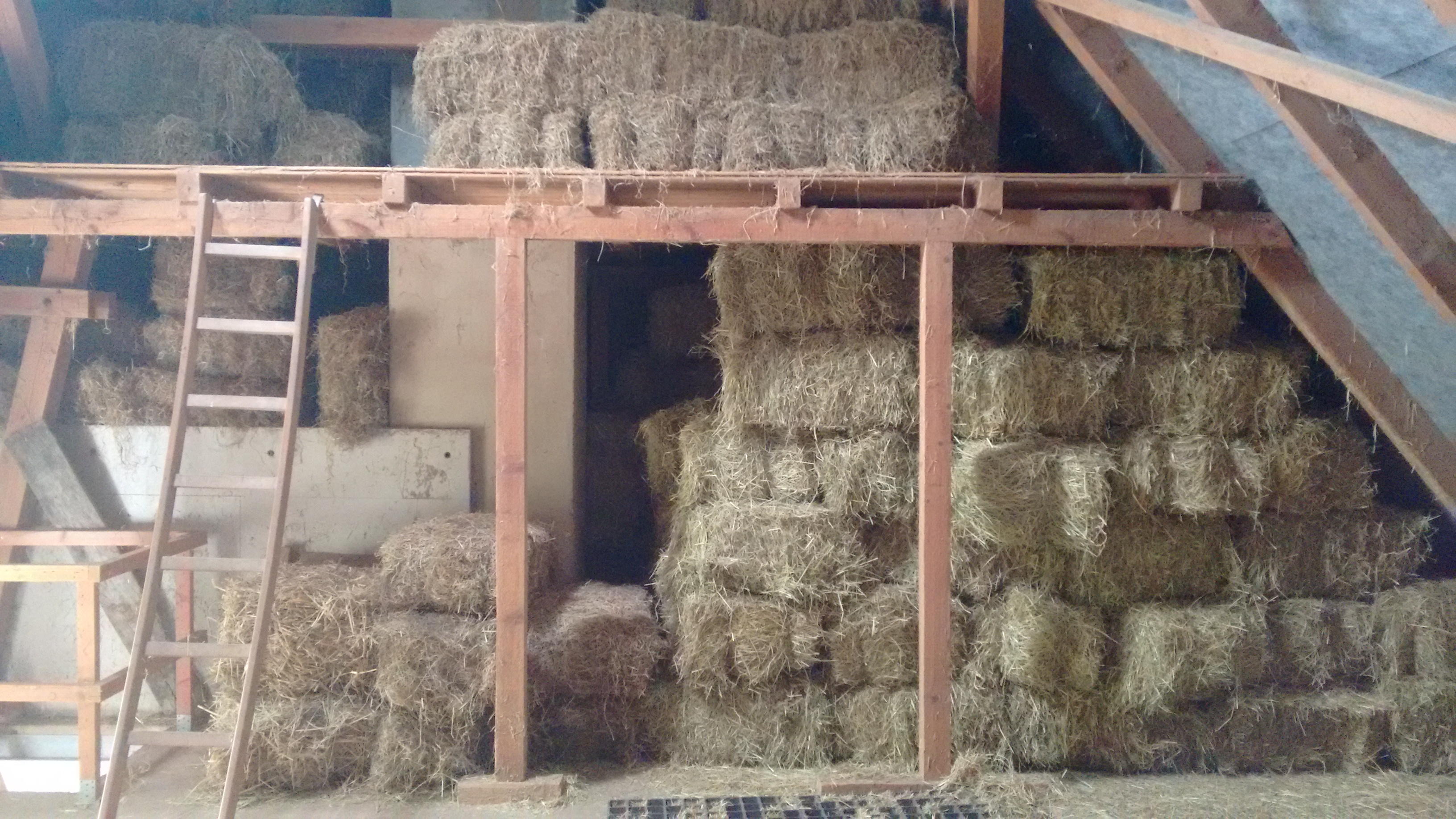 Dexter hat Mäuse gesucht, aber keine gefunden – nur gehört. Ich habe das Heu umgestapelt und loses Heu oder kaputte Heubunde runter zum verfüttern geworfen. Nun ist es da oben zumindest soweit, das neues Heu hinauf kann. Durch den zweiten Schnitt vom Herbst 2015 habe ich noch eine gute Reserve, natürlich wird auch das ganze Heu noch verfüttert. Ist ja nichts dran und trocken gelagert. Riecht noch immer klasse, das Heu.