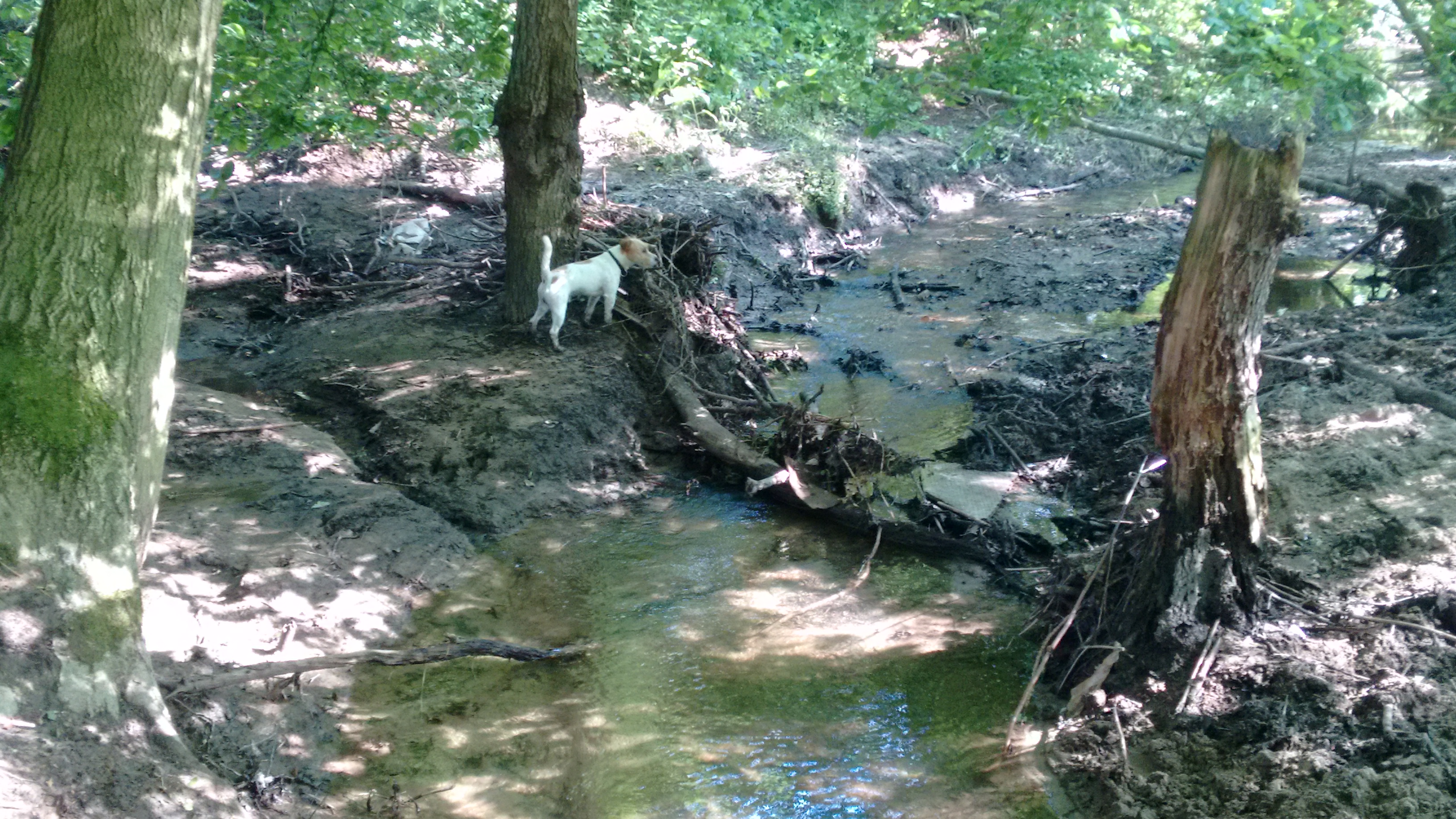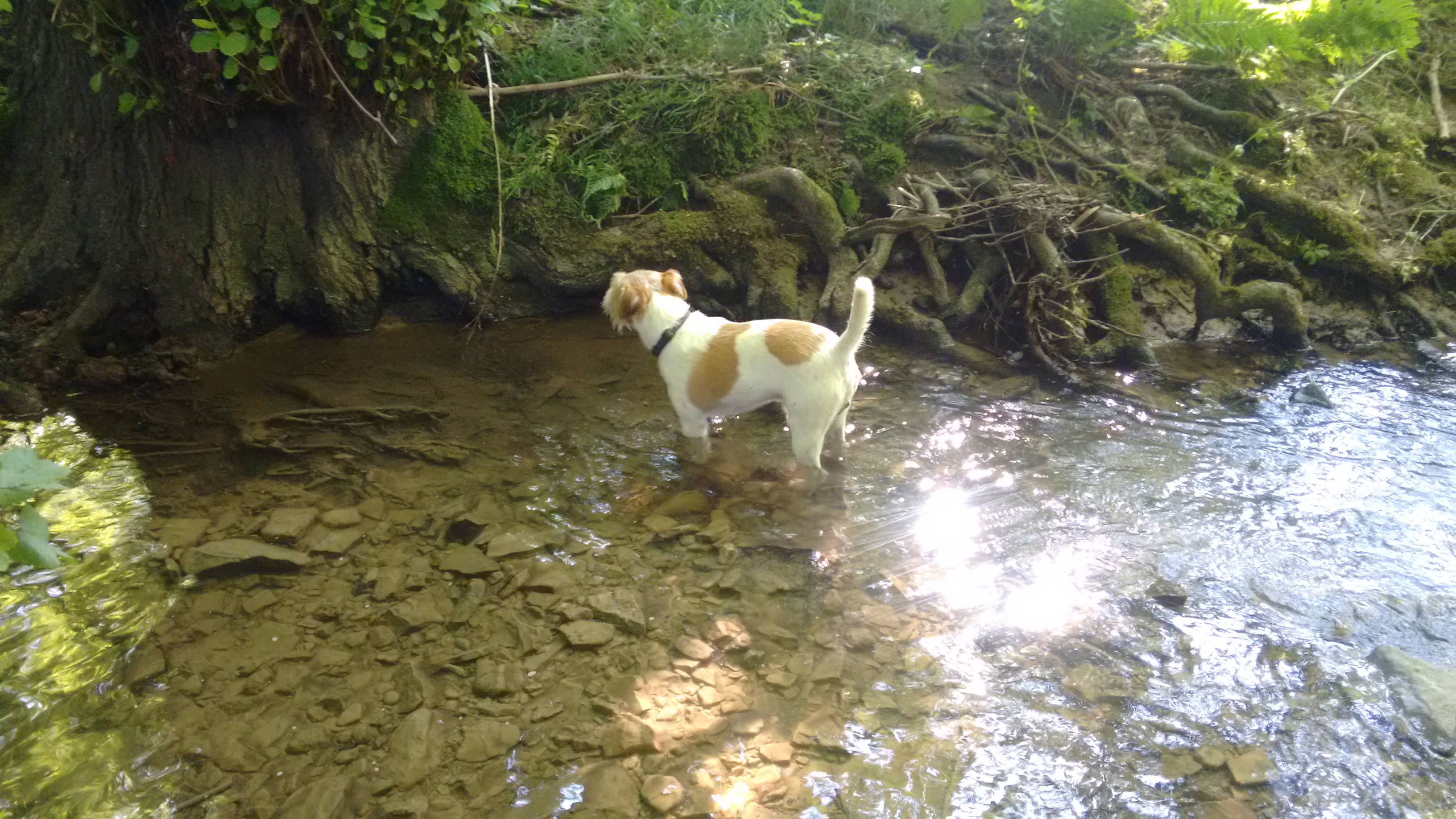 Als wir an unserem Waldstück angelangt waren, bin ich mit Dexter runter zum Bach gegangen.