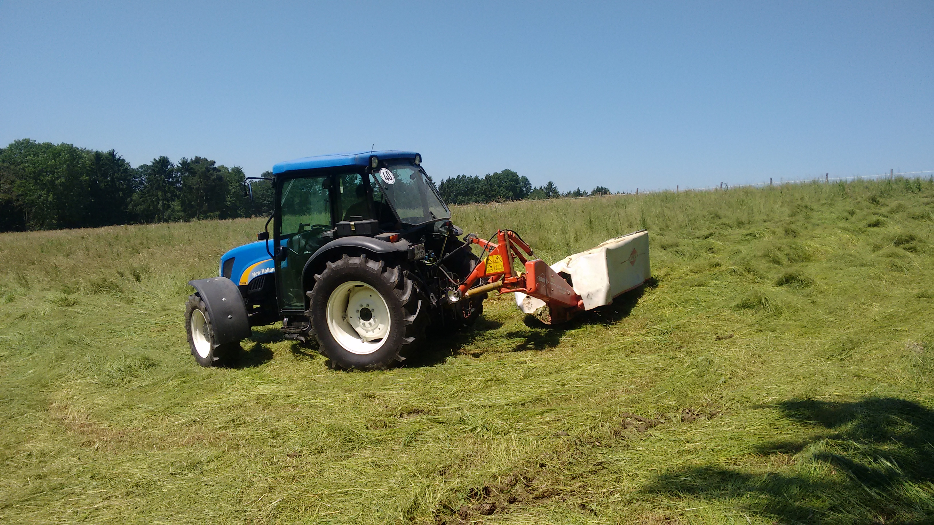 Heute früh musste ich noch den Zaun zur Heuwiese abbauen – Weidepfähle in Einschlaghülsen sind einfach toll – und ich habe die Motorsense zum Nachmähen der Wiesenränder auch startklar gemacht. Musste das Schneidmesser wechseln und schärfen und wieder alles zusammenbauen. Gegen Mittag kam der Bruder und hat gemäht. Ich mache wirklich „alles“ mit dem Trecker und den Geräten. Auch das Anbauen und testen des Mähwerks ist kein großes Problem. Doch irgendwie traue ich mich nicht, mit dem Gerät über die Wiese zu düsen. Da es meinem Bruder heute aber sehr schlecht ging nach dem Mähen, muss ich doch wohl mal einen Selbstversuch starten.