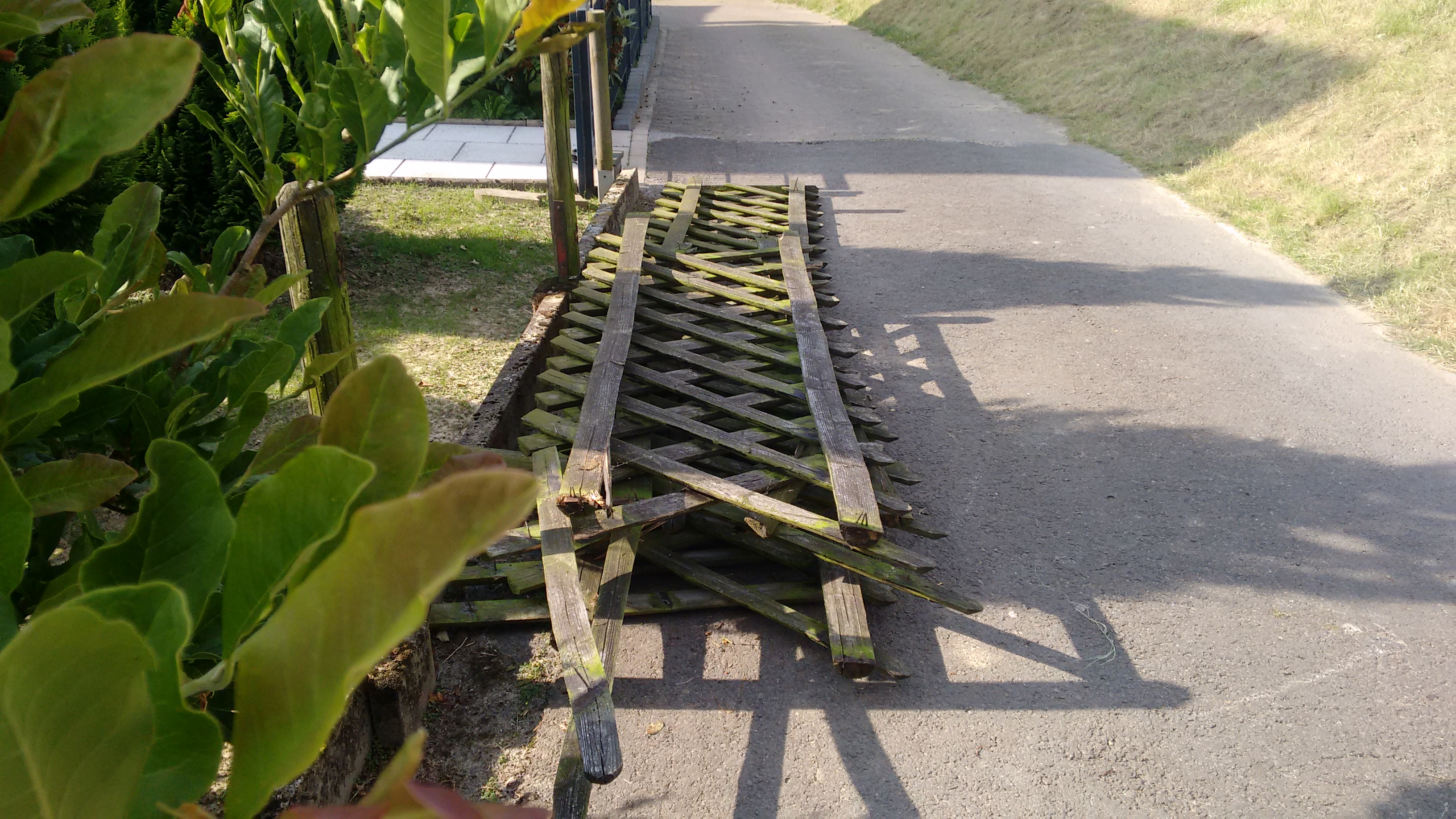 Mein Vater hat vor einigen Jahren angefangen, den Holzjägerzaun durch einen Doppelstabmatten-Zaun zu ersetzen. Die letzten 20 Meter hat er leider nicht mehr vollenden können. Meine Mutter und ich konnten uns bisher auch leider nicht aufraffen, aber nun haben wir das ganze in Profihände gegeben. Nächste Woche soll es losgehen. Und da Holz gut verfeuert werden kann, habe ich den Zaun heute dann mal abgebaut