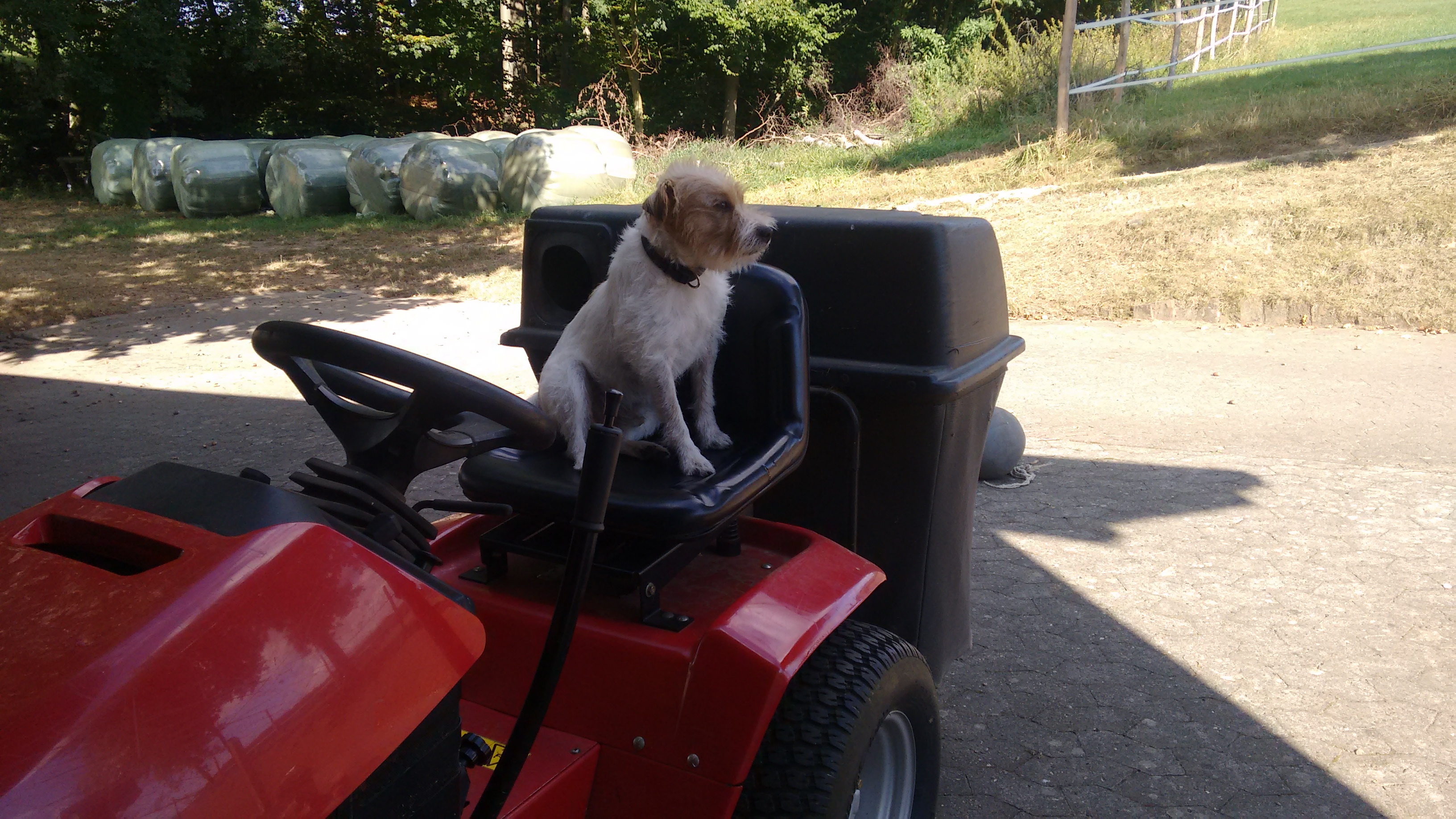 Nachdem der Rasen kurz war und ich auch in der Teichwiese das lange Gras der Geilstellen etwas entfernt hatte, bin ich wieder eine kleine Runde mit Björt und Dexter geflitzt. Hat den beiden Spaß gemacht – und mir auch.