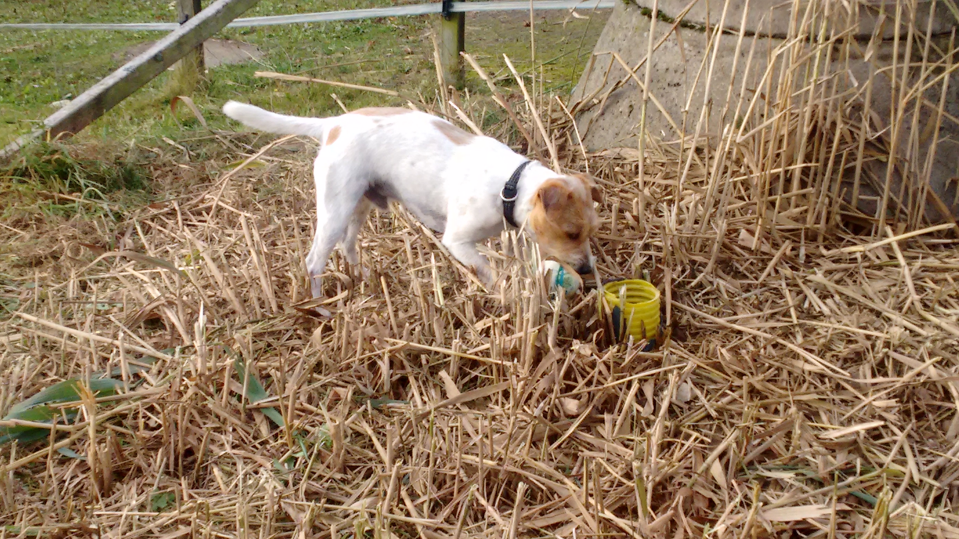 Als ich dann das Schilf zusammengeharkt und weggefahren habe, da durfte der Hund aber frei laufen und er fand es toll mit seinem Ball im Schilf verstecken zu spielen. Normalerweise bleibt der Schilf über Winter als Frostschutz auf dem Kies liegen, doch da spätestens Ende Oktober unsere Kläranlage umgeändert wird, konnte ich den Schilf gleich abfahren. In ein paar Wochen haben wir eine andere Klärlösung.