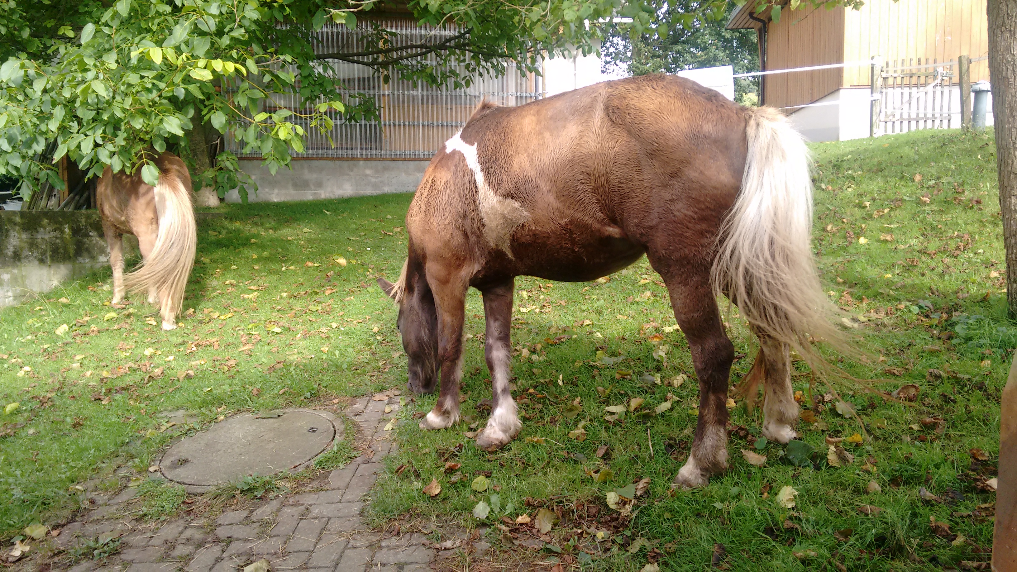 Nach dem ins Maul schauen durften die Damen noch etwas langen Rasen abknabbern. Durch den Dauerregen der letzten Zeit ist das Gras schon fast zu lang für den Rasenmäher. Dürfen also die 4beinigen Grasvertilger erst Vorabeiten.