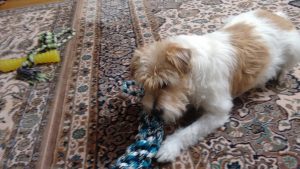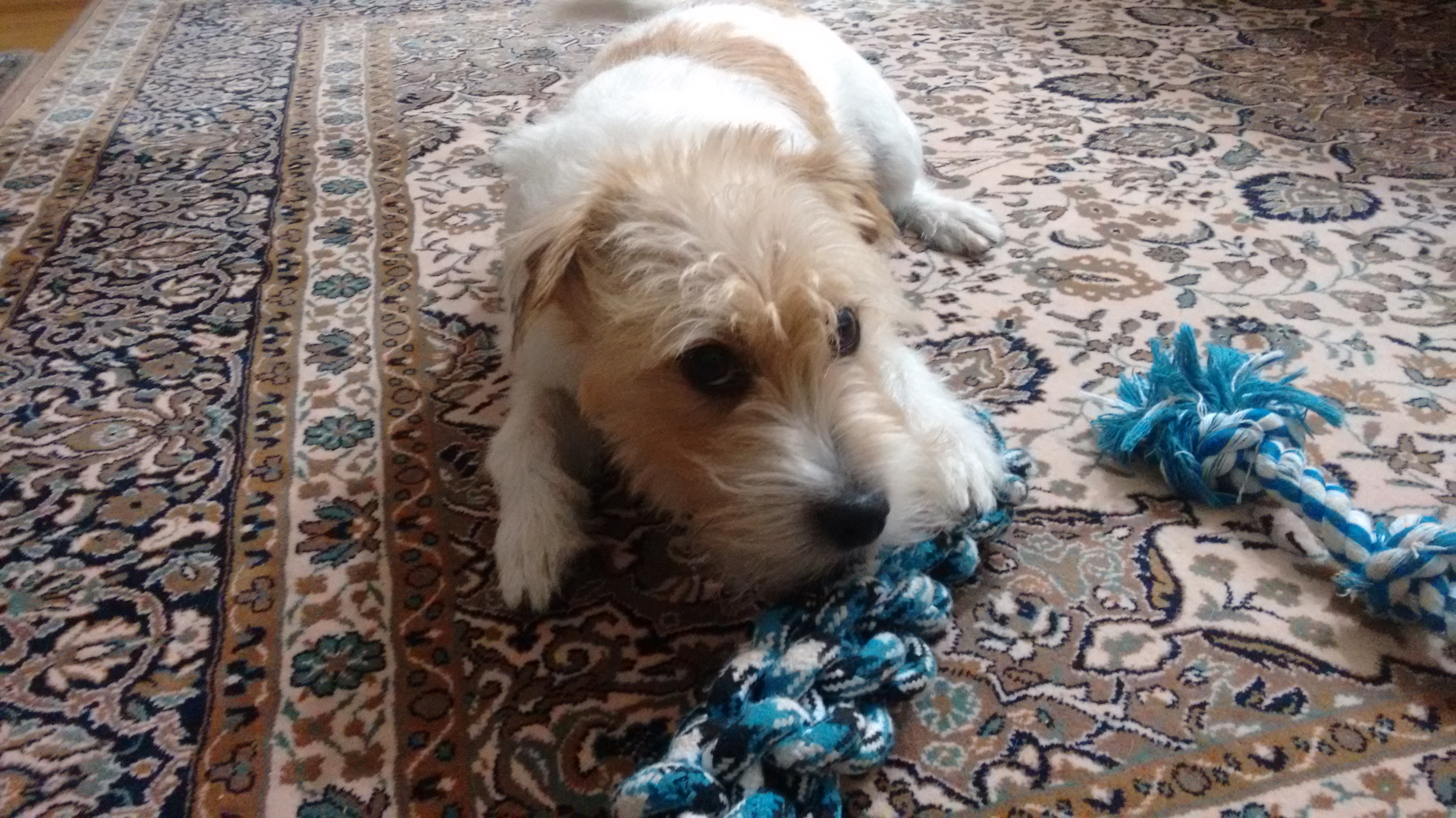 von 23.30 Uhr bis Mitternacht wurde mit seinen diversen Seilspielzeugen geworfen, gezogen und dran rumgeknabbert. Danach war aber Schluss 🙂
