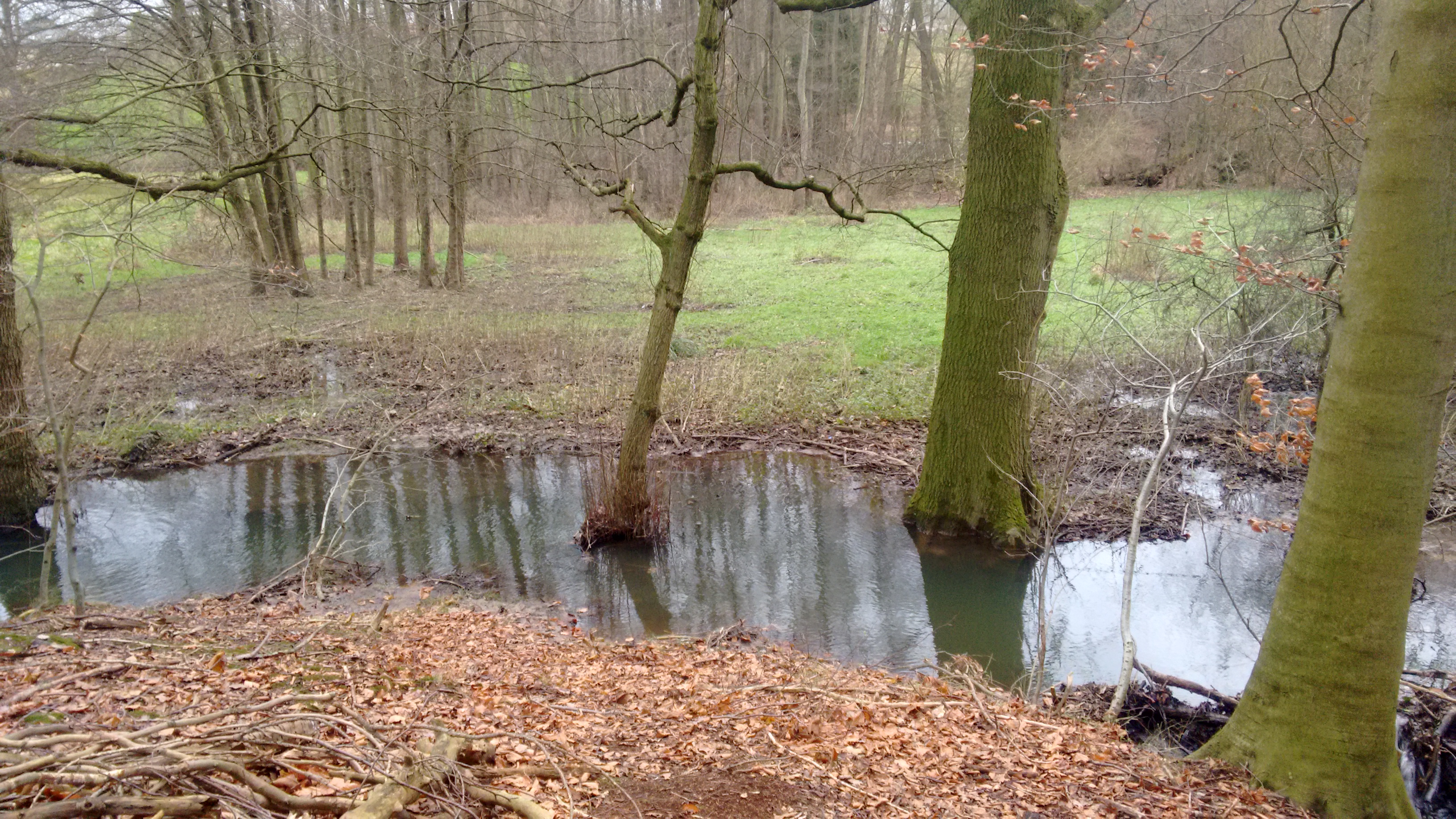Ansonsten sieht es ganz gut aus ins unserem Waldstück. Keiner unserer Bäume ist umgefallen, nur der Waldboden ist super nass. Teilweise sackt man da sogar ein. Mit Trecker und Hänger zum Baumfällen geht es auf keinen Fall.
