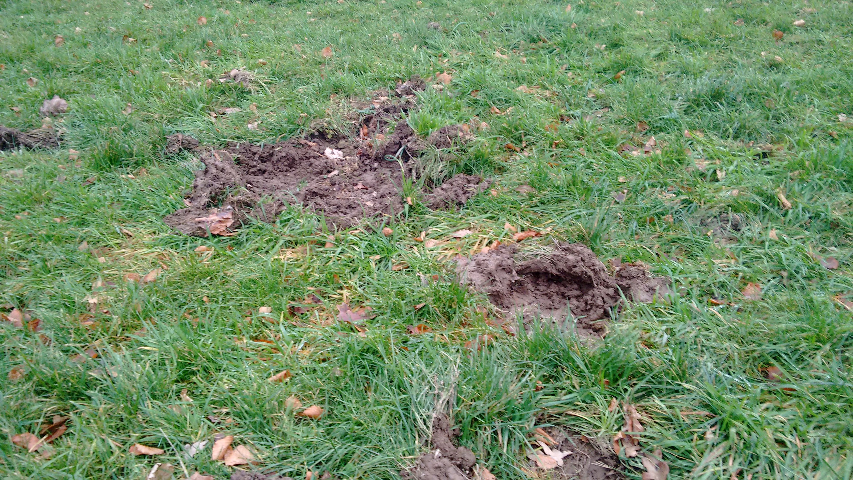 Naja, da werden die Jäger im Frühjahr ihren Spaß bekommen, denn die Schäden dürfen sie gern wieder beseitigen. Die halbe Wiese sieht so aus.