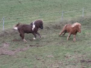 Bereits letztes Wochenende war das Wetter schön und die Pferde hatten Hummeln im Hintern. Da sie während des Stall mistens arg nervten, habe ich sie auf die Weide gelassen. Das haben sie zum ausgiebigen Toben genutzt. Mittwoch kam ich nach Hause, und der Paddockzaun war an paar Stellen geschreddert. Björt war im unteren Teil des Paddocks durch den Zaun gegangen und Svandis hatte das Tor zur Weide zerlegt. Ich dachte, ich hätte noch genug Zaunband, doch ich fand so auf die Schnelle nur alte Stücke, die habe ich nicht eingesetzt. Durften Björt und Svandis bis Freitag auch Nachts aussuchen wo sie stehen wollten. Da auf den Wiesen noch nichts wächst, sind sie 70 % des Tages im Stall an den Heunetzen. Freitag bin ich schon Mittags aus dem Büro verschwunden. Björt und Svandis waren sehr erstaunt, als plötzlich mit Zaunband und Co bei ihnen stand. Den Eimer mit den Möhren fanden sie allerdings am Besten. Die 3 Elektrolitzen waren recht schnell ersetzt und neue Torgriffe gab es auch. Hoffen wir, das das nun erstmal wieder hält. Nach der Zaunreperatur habe ich noch etwas Laub vom Hof und vom Rasen und auch von der Wiese hinter dem Schuppen auf den großen Kompost gepustet. Wie jeden Tag stand auch noch Hundefußball und das abendliche Pferde versorgen auf dem Plan und dann war auch Feierabend.