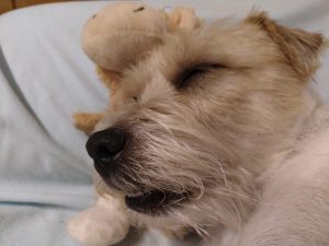 Dexter und ich sind dann ins Haus. Und Dexter ist nach ein paar Stunden frische Luft immer ganz doll müde.