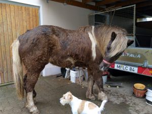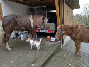 Der Winter kommt nun doch wohl auf uns zu. Immerhin habe ich es noch am vorletzten Tag im Oktober geschafft, den Yeti auf die Winterreifen zu bekommen. Von wegen „O bis O“ – daran halte ich mich ja sowieso nicht. Selbst bei diesem nassen Wetter könnte ich noch gut mit meinen Sommerreifen umherfahren. Da im Büro zur Zeit sehr viel zu tun ist, komme ich nur zu den Fütterungszeiten zu Björt und Svandis. Wegen den noch angenehmen Temperaturen dürfen die beiden auch noch die Winterweide nutzen. Entsprechend sehen sie aus. Björt hat schon immer Angst, dass das Stalldach auf sie drauf fällt. Egal bei welchem Wetter, Björt steht draußen und schläft auch im Paddock im Regen oder Schneesturm. Svandis hingegen mag es überhaupt nicht nass zu werden und bleibt deshalb größtenteils im Stall. Doch wenn Svandis dann mal draußen ist, macht sie sich auch richtig dreckig.