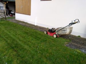Da mein Winterurlaub nun im wahrsten Sinne des Wortes ins Wasser fiel, wurde mir von meinem Chef gesagt: Urlaub in den April/Mai mitnehmen geht nicht, ausbezahlt wird bei uns nicht. Da 2 Kollegen Mitte und Ende März Urlaub geplant haben, blieb für mich nur noch jetzt. Chef sagte, entweder das, oder Urlaub verfällt. Dann nehme ich doch lieber Urlaub. Den ersten Urlaubstag am Montag habe ich dann genutzt um unser gesammeltes Altglas endlich mal zu entsorgen, und als es am Nachmittag nicht regnete, habe ich mir unseren Oldtimer hervorgeholt. Der alte Rasenmäher hat schon eine Jahrzehnte auf dem Buckel. Und im letzten Herbst ist er mir verreckt. Sprang nicht mehr an, kein Bild kein Ton – nichts. Gestern habe ich den Luftfilter gesäubert, Sprit aufgefüllt – obwohl noch etwas mim Tank war – Zündkerze war trocken, alles gut. 3 mal gezogen, war der Motor am Laufen. Leider nur kurz. Hmm … nochmal angemacht und nach etwas Stottern und viel Qualm aus dem Auspuff, lief der Motor wieder rund. Da der Toro nun schon mal an war, habe ich 2 kleine Rasenflächen gemäht. War aber alles sehr nass. Björt hatte für sich und Svandis mal wieder die Wiese geöffnet. Mittlerweile nimmt den Zaun nicht mehr ernst wenn Strom an ist, weil sie das durch ihren dicken Winterpelz kaum merkt.