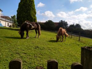 Der September ist da, und somit der Monat, in dem ich „immer“ einen kleinen Urlaub nehme. Den Start in den Urlaub am Samstag wie üblich mit Einkaufen, Friedhofsbesuch und Stallarbeit verbracht. Während ich den Stall gemistet habe und den Misthaufen ein wenig gerade gemacht habe, waren die Pferde im Garten und haben Birnen (Fallobst) gefuttert. Sonntag hieß es um 4 Uhr „aufstehen“, Kaffee kochen, Mutter startete in ihren Urlaub. Um 5 Uhr habe ich Mutter, Onkel und Tante nach Lübbecke zum Reisebusunternehmen gebracht. Wie schon letztes Jahr sind die drei ins Kleinwalsertal gefahren. Nachdem die drei dort abgeliefert waren, bin ich wieder heim. Den Pferden das Frühstücksheu gegeben und dann schnell nochmal ins Bett gekuschelt. mit dem Einschlafen habe ich dann keine Probleme.