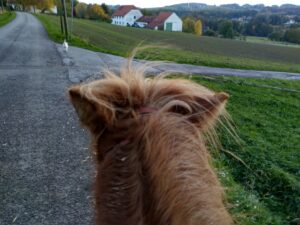 Nachdem Laub bekämpfen, Heu abwerfen, reiten und anschließend dem Versorgen der Pferde war ich ziemlich kaputt. Feierabend…